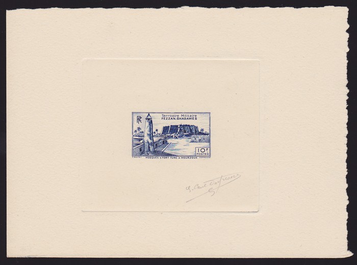 & Fort 10Fr blue Epreuvre de Artiste. VF fresh UN as made, signed by engraver. SG 32(p), Yv 37EPA. Very rare. (P) (Image1)