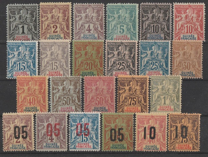 Peace & Commerce set 1c-1Fr plus new colours set 10c-50c & Surch 05/2c, 05/4c, 05/15c, 05/20c, 10/40c & 10/75c, early 1990s Fournier forgeries. F-VF fresh MNH. SG 1-17 & ex 49A-55A cat £378+ as genuine. (23) (Image1)