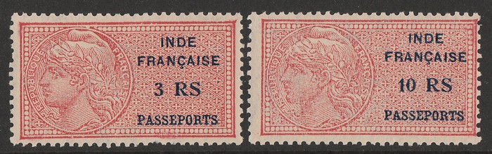 Passport Revenue 3Rs & 10Rs top values. F-VF fresh MNH. Bft 8-9. CEPF 8-9 cat €500+. Very rare. (2) (P) (Image1)