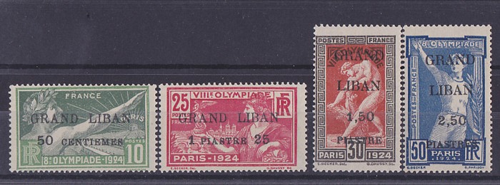 'GRAND LIBAN' opt Olympic set 50c-2Pi50. VF fresh MNH. SG 18-21 cat £150 for M, should be at least double, £300 MNH, Yv 18-21 cat €260+. (4). (P)