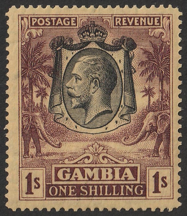 Elephants 1/- blackish-purple/yellow-buff, wmk Mult Script. VF fresh M. Scott 113a cat US$75. SG 134a cat £70. (Image1)
