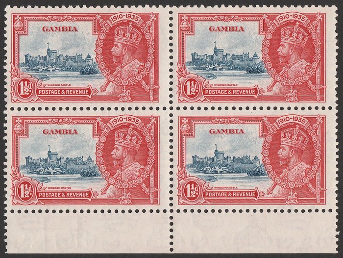 Jubilee 1½d deep blue & scarlet, bottom marginal blk of 4, UL stamp 'extra flagstaff' variety. VF fresh MLH/MNH. SG 143/143a cat £352 as singles, plus premium for positional se-tenant blk, which should be +50%, so est cat £528.
