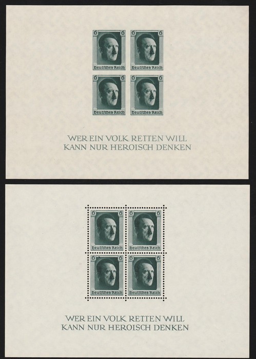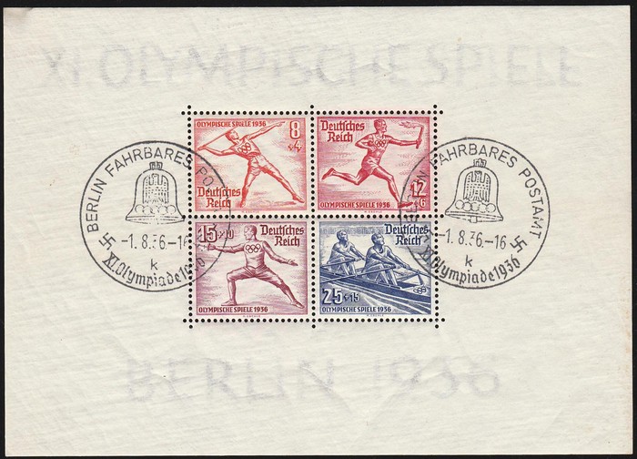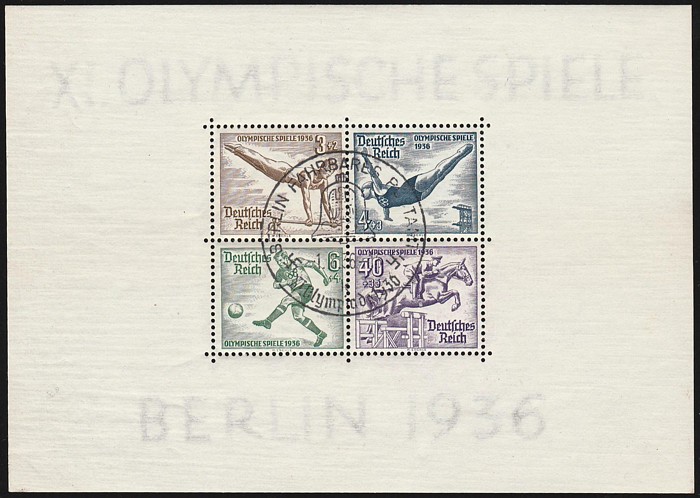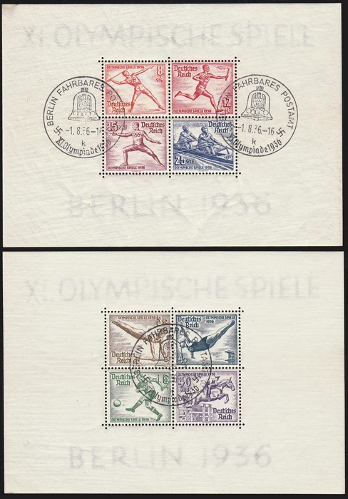 M/Sheet set (147x106mm). VFU, 'Berlin 1.8.36' special pmks. Mi Blk5 & 6 cat €180. SG MS613a cat £225. (2 M/S) (Image1) (Image2)