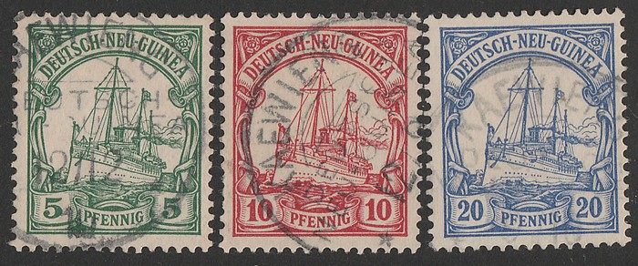 Postmark: 'Kaewieng DNG' cds on Yacht 5pf, 10pf & 20pf. VFU. SG 8-10. Mi 8-10. ArGe cat €90 nett value. All exp Bothe BPP. (3). (Image1)