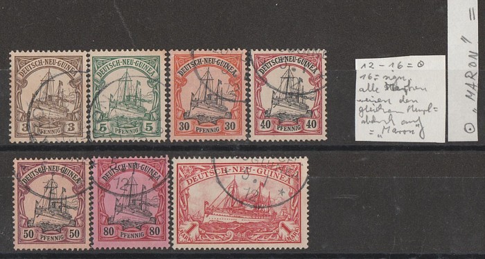 Postmark: 'Maron DNG' cds mostly 1912 lower part of cds on Yachts 3pf, 5pf & 30pf - 1Mk. SG 7, 8 & 12-16 cat £215+. Mi 7, 8 & 12-16 cat €180+, both as loose stamps, plus ArGe cat €100 net value ea = €880). All exp Bothe BPP. (6)