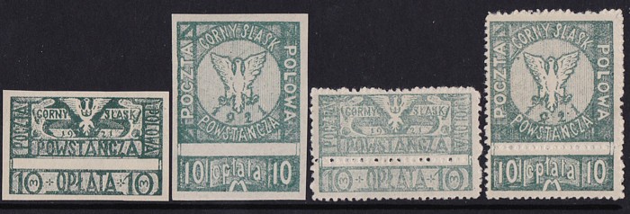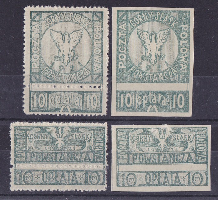 Polish Rebel 'Green Post' set 10pf Eagle horiz & vert format, both perf & imperf. VF fresh M. Mi 1-2A & B cat €330. Very scarce! (4) (P) (Image1)