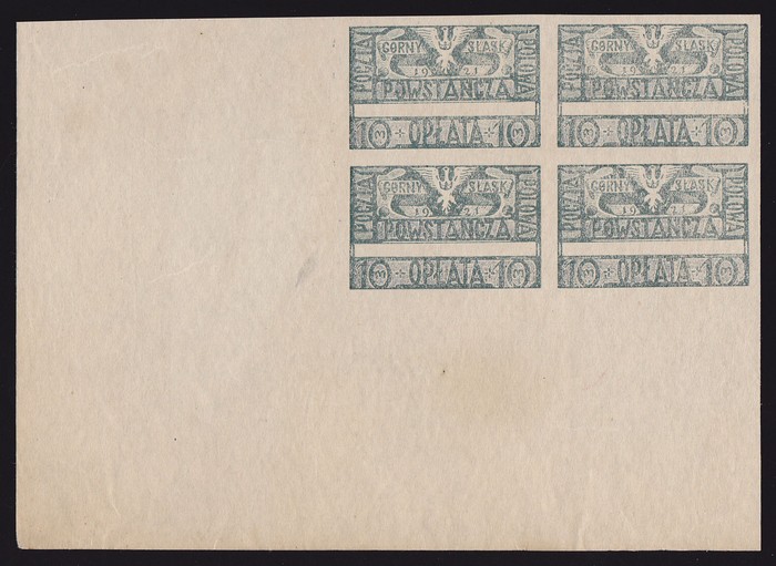 Polish Rebel 'Green Post' 10pf Eagle horiz format, imperf, cnr marg blk of 4. VF UN. Mi 2B cat €200 as UN singles. Scarce multiple. (4) (Image1)