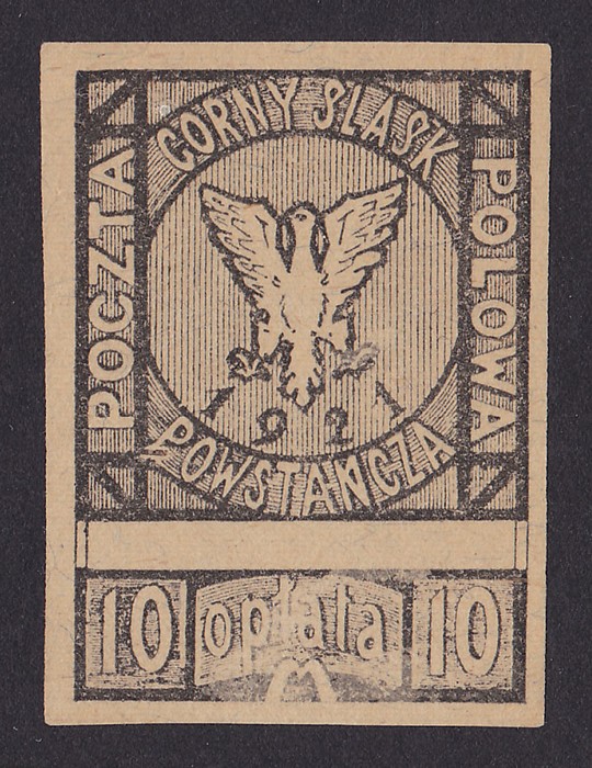Polish Rebel 'Green Post' 10pf Eagle vert format, imperf PROOF in black on wove paper with strong mesh. Superb fresh UN as made, 4 large margins. Mi 1B(p) unlisted. Extremely rare - only currently recorded example. 2015 Ceremuga AIEP photo cert.