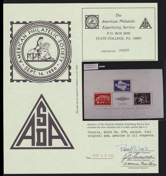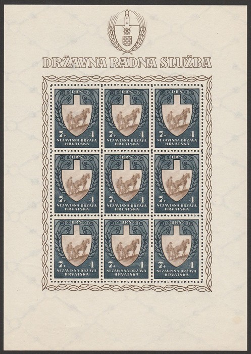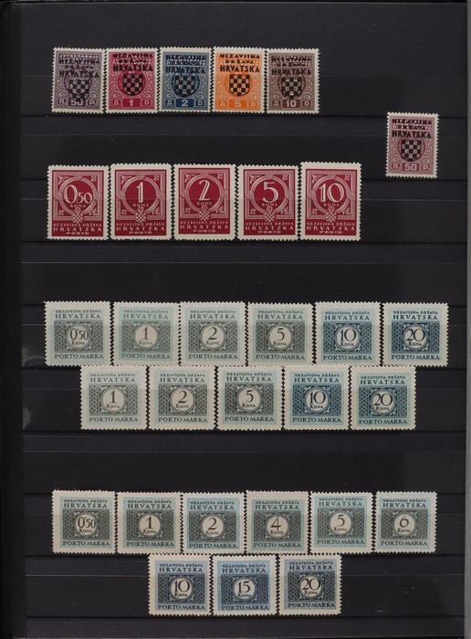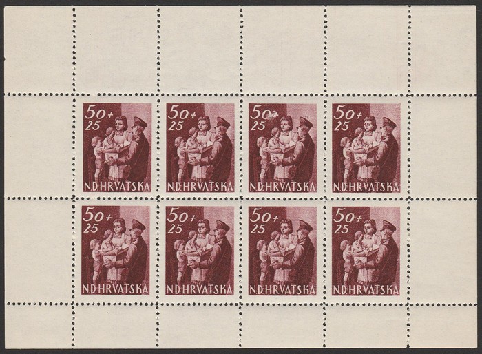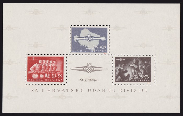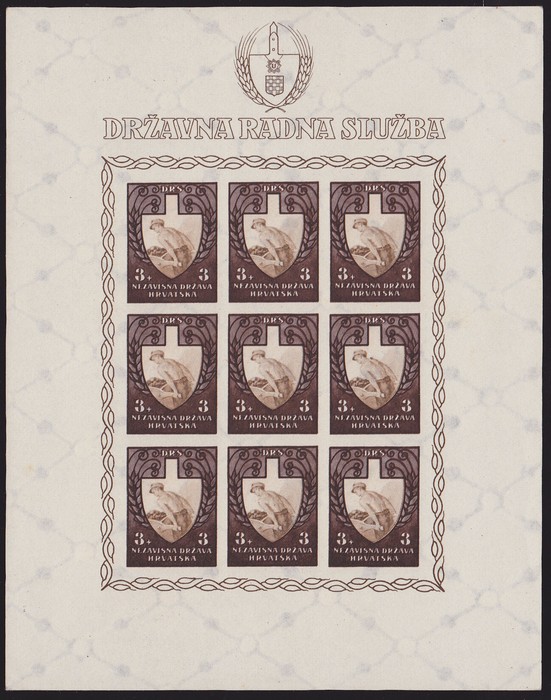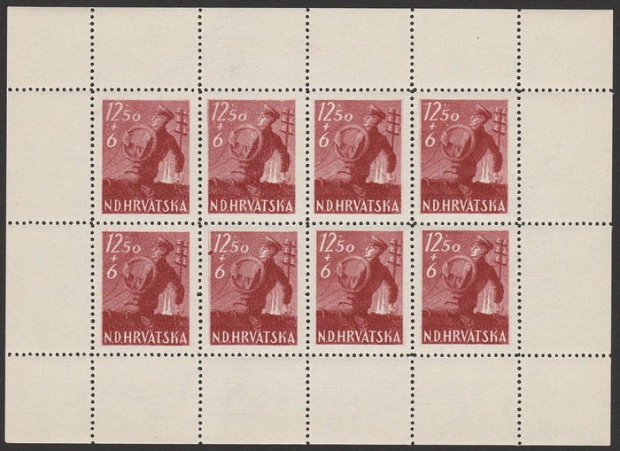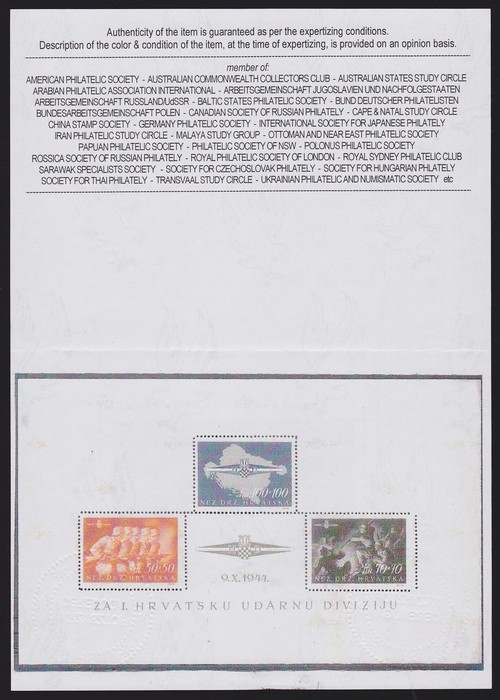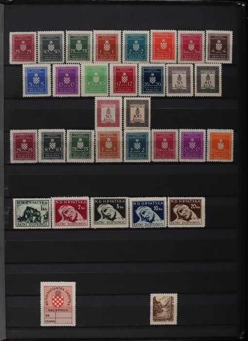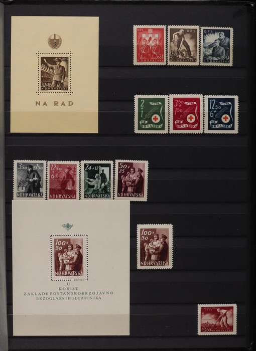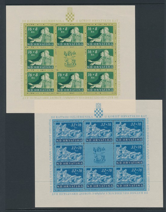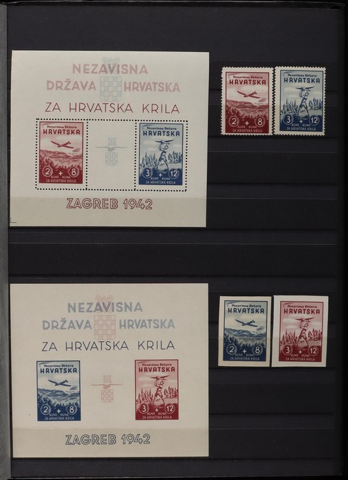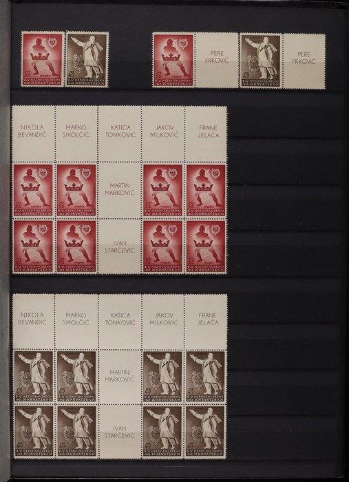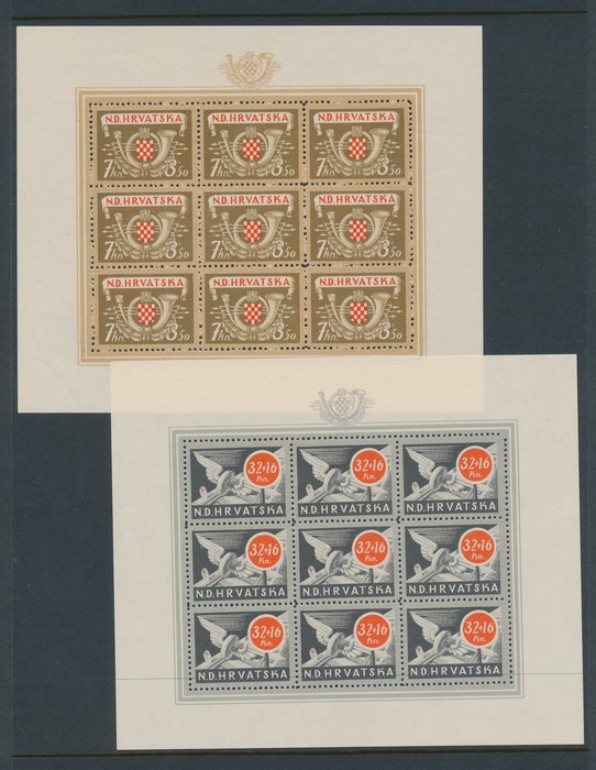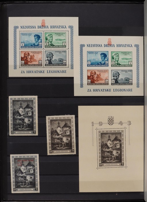 set blks of 8 with tabs, plus M/S perf & imperf, plus stamps from both M/S, 1943 President M/S perf & imperf also, plus stamps from both M/S, 1943 Legion Fund set perf & imperf, plus M/S perf & imperf. 1943 Zagreb M/S. 1943-44 President set to 100k.