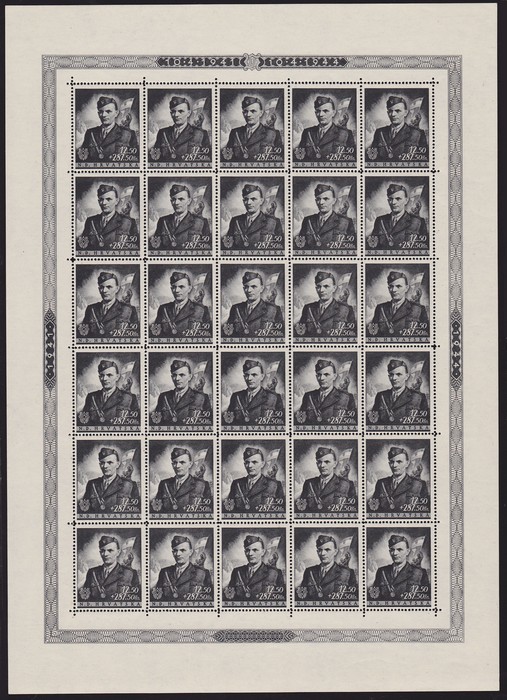 Francetic 12.50+287.50K sheetlet of 30 with margins. Superb fresh MNH. Mi 161KLB cat €400+, SG 134 cat £420 as M singles, so £800+ MNH. Rare sheetlet! (P)