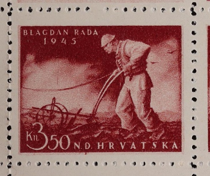 printer's imprint at base translated proof print from copper cylinder, design Prof I Rezek, by Tipografija dd Zagreb (290x260mm). VF UN, sl aging. Probably unique as full sheet. 2024 Ceremuga photo cert. (P) (Image1)