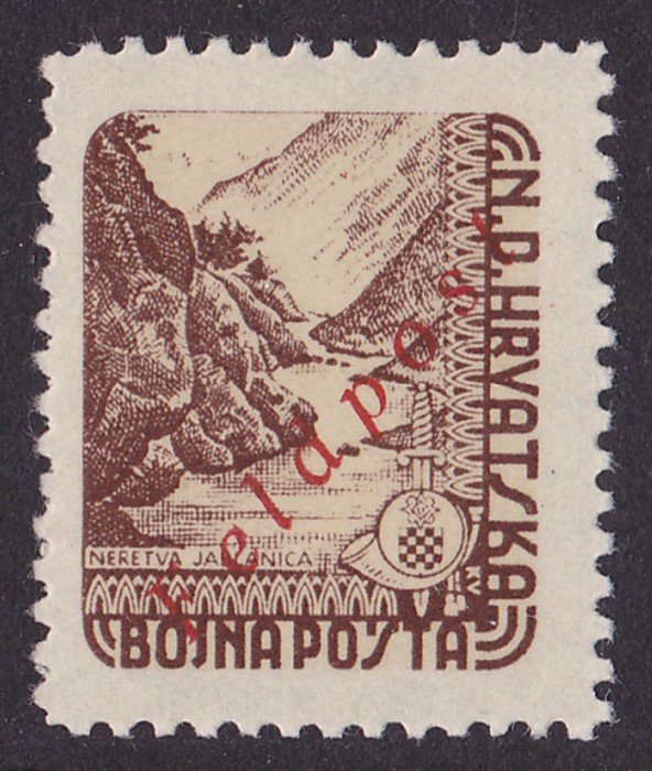 Military stamp with red 'Feldpost' opt, prepared for German troops but never issued. Superb fresh MNH. Mi M2(var) opt mentioned in footnote but unpriced. Exp Zrinjscak BPP.