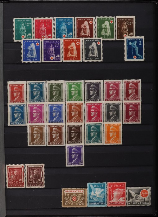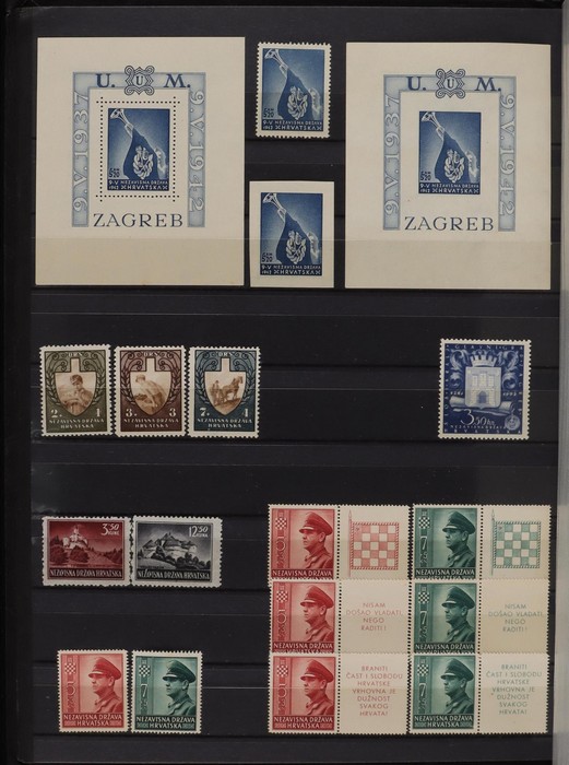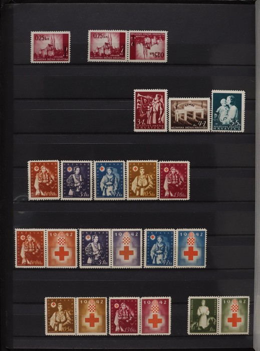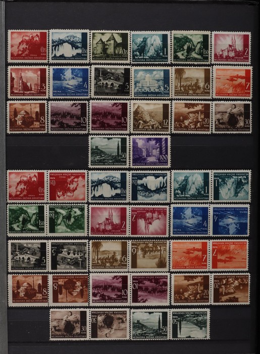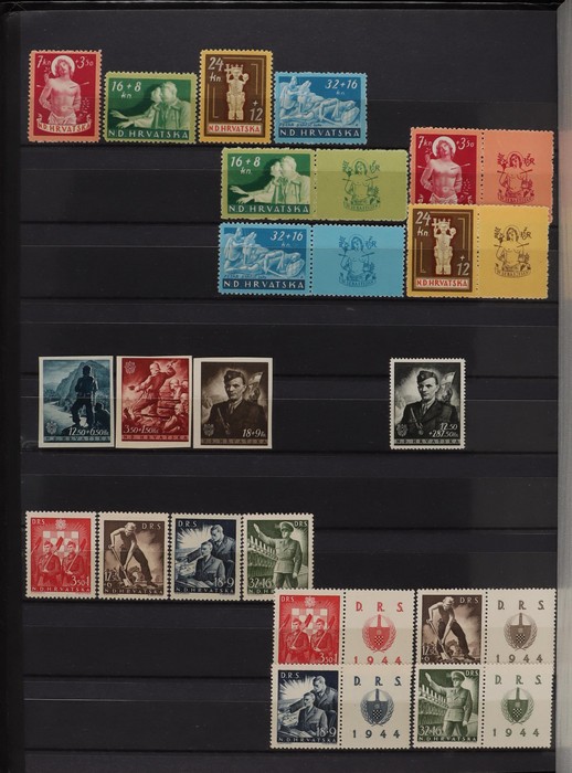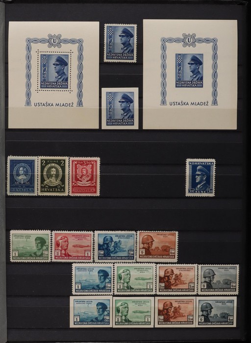 MNH collection in s/book almost comp inc 1941 opt Yugoslavia King sets to 30D. 1941 opt Brod Exhib set with tabs. 1941-42 Pictorial set to 100k, plus tete beche prs to 50k. 1942 Aviation M/S perf & imperf, plus stamps from both M/S, 1942 Youth Fund