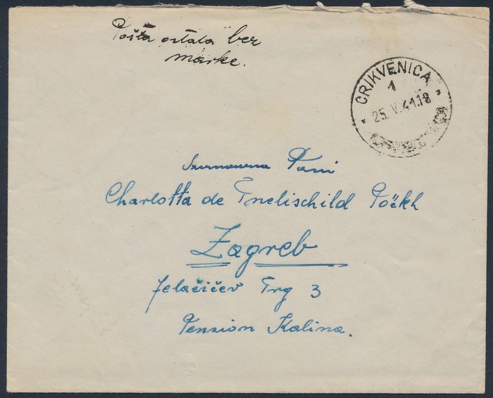 25.V.41' cds & m/s 'posta ostala bez marke' (PO is left w/o stamps), thus proving that this coastal town PO had totally run out of stamps. Amazing & probably unique usage. 2015 Dr Colla AIEP & 2018 Ceremuga photo certs. (P) (Image1) (Image2)