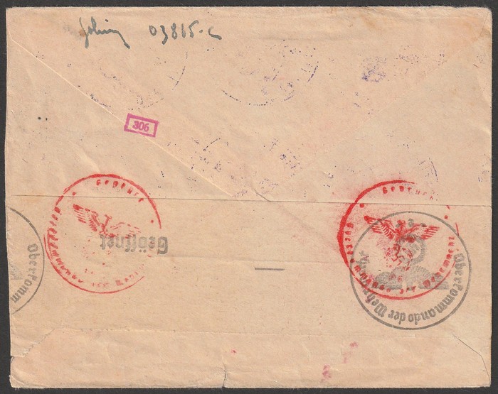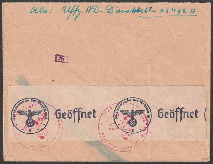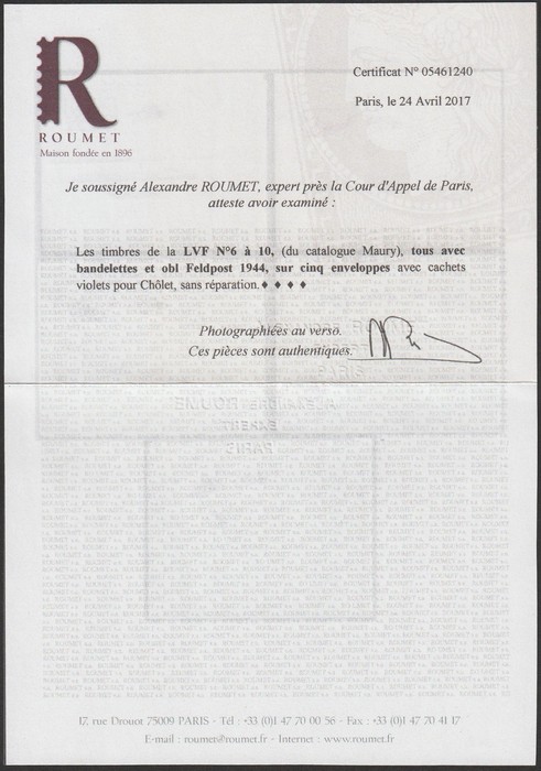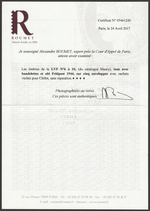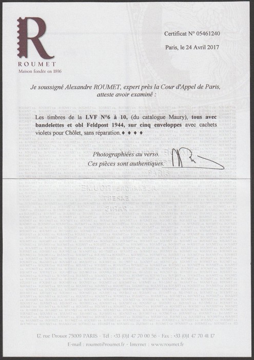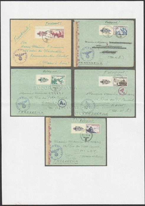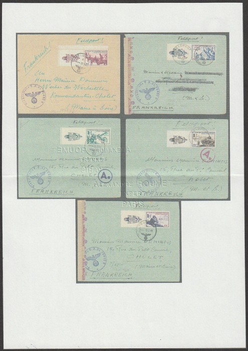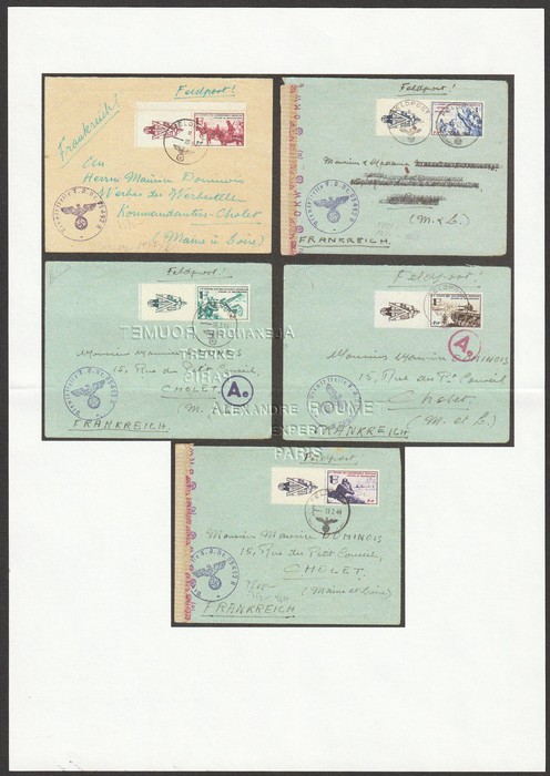 France, with censor tape 'Oberkommando de Wehrmacht' & red censor cachet. Maury 6-10 cat €400+. Mi VI-X. Rare genuine postally used cover. 2024 Ceremuga photo-cert.