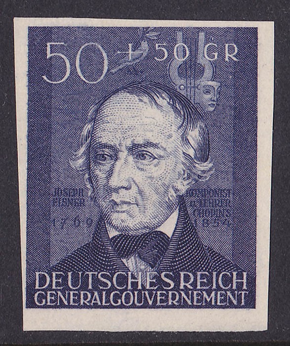 Govt: 1942 Elsner 50+50gr blue IMPERF. VF UN as made, 4 margins. Mi 99U cat €250. (P) (Image1)