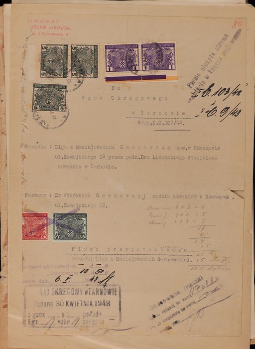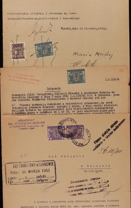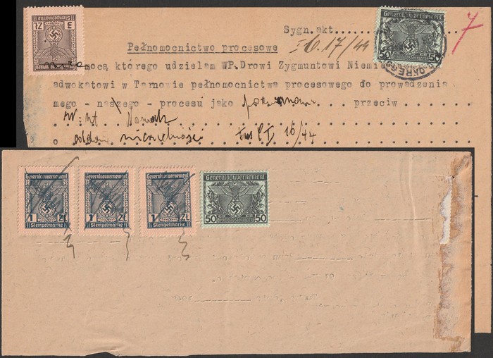 Govt: 1940-44 legal documents with various Court Fee & Stamp Duty revenues to 10zl, inc mixed frankings. Mostly F-VF. Interesting lot. (12 docs) (Image1) (Image2)