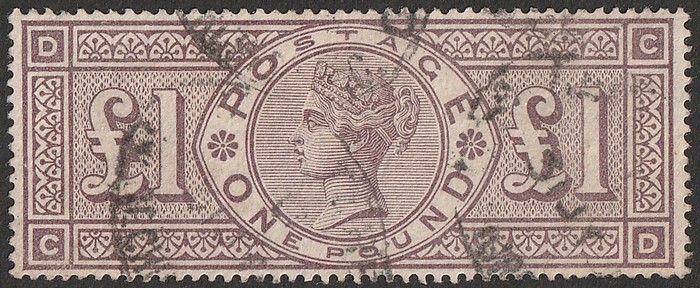 brown-lilac, wmk 3 Crowns, letters BC-CB. GU, barred oval pmk & cds, sl creases, good colour. Scott 110 cat US$3500. SG 185 cat £2750. (P) (Image1)