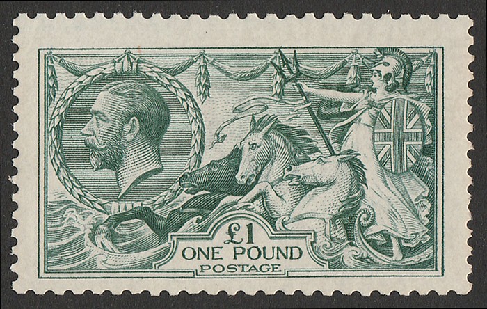 £1 dull blue-green. VF fresh MNH, pristine never hinged original gum. Scott 176a cat US$4375, SG 404 cat £3800+ & undercatalogued for MNH (as M cat £2800). Rare in genuine MNH condition & certificate can be obtained on request.