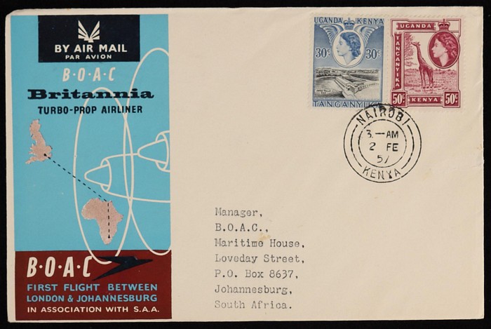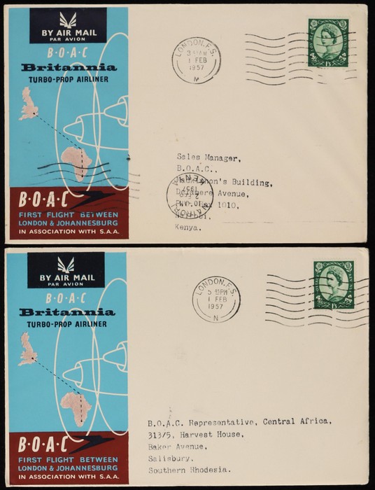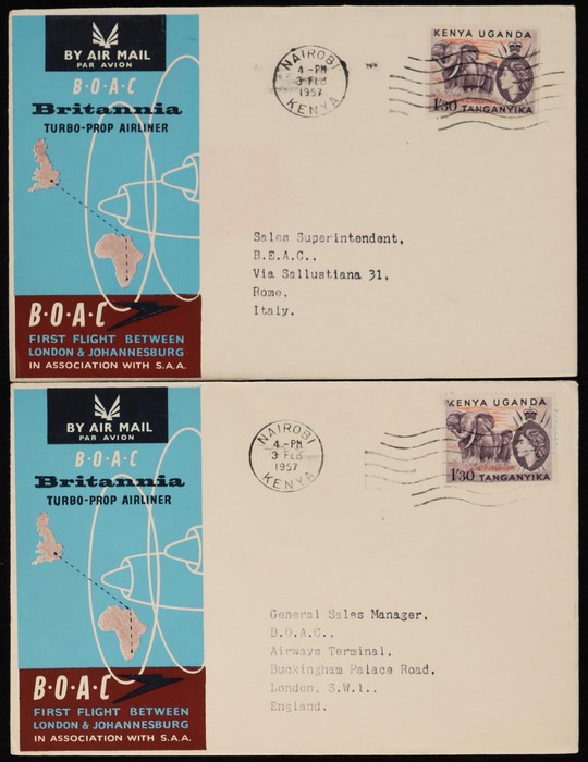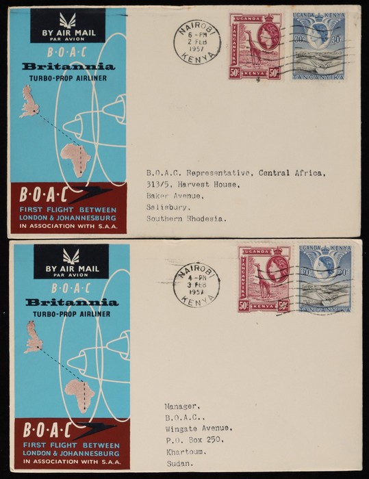 Johannesburg FFC intermediates from Kenya to Sth Africa, or return flight Kenya to Sthn Rhodesia, Sudan, Italy & GB. (5) (Image1) (Image2)