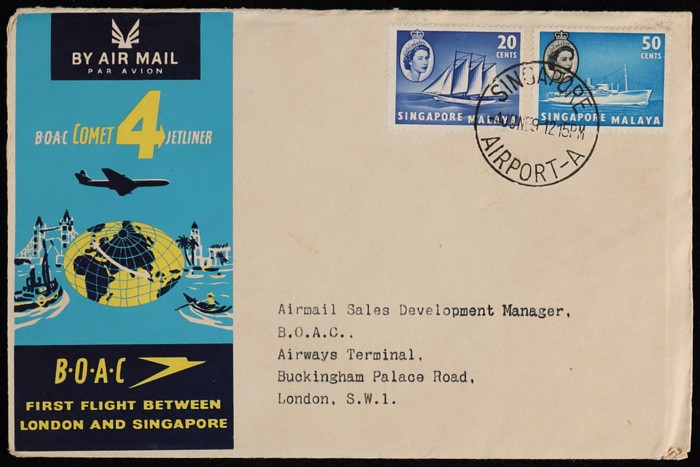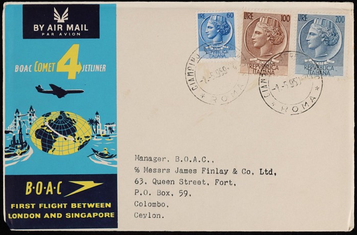 Singapore FFC,, plus return flight & Italy - Ceylon intermediate. VF. (3) (Image1)