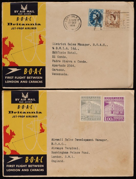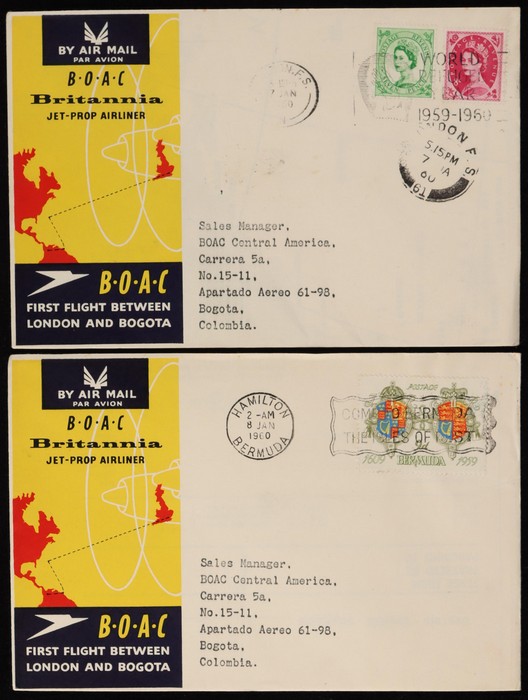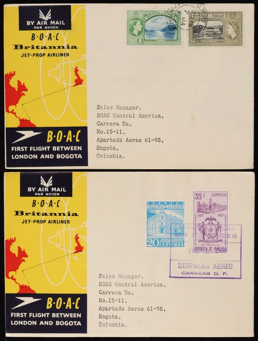 Bogota FFC, plus intermediates to Colombia from Bermuda, Trinidad & Venezuela, plus Colombia - Trinidad. Also 1958 London - Venezuela & return. F-VF. (7) (Image1) (Image2)