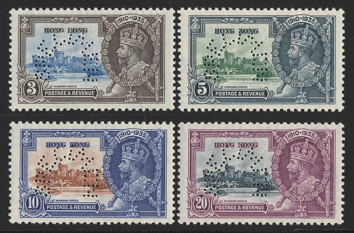 Jubilee set 3c-20c, perf SPECIMEN. Superb fresh MNH. SG 133s-136s cat £500 for M, should be at least double, £1000 MNH. Rare genuine set especially MNH & certificate can be obtained on request. (4) (P) (Image1)