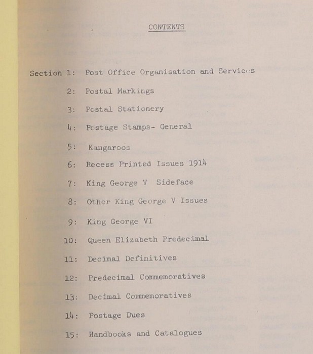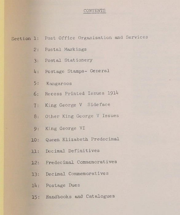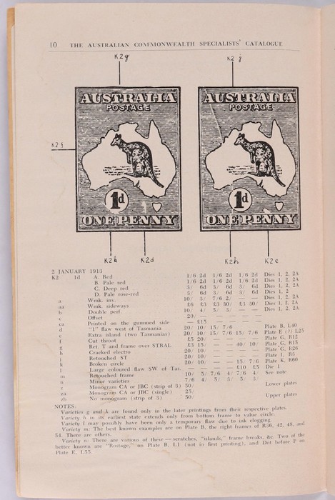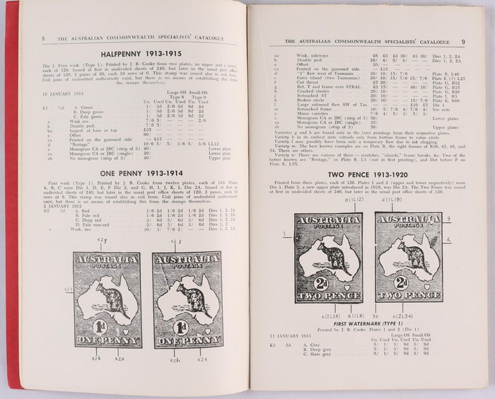Pre-decimal Technical Publications on stamps to 1965, 8 diff inc Early Federal Period to 1912, Early Commonwealth Period & The Kangaroo, KGV Sidefaces & Pic Definitive Stamps & Postage Dues. All VGC. (8) (Image1)