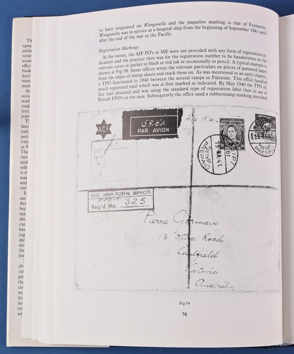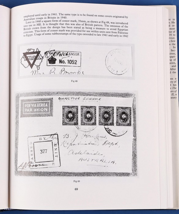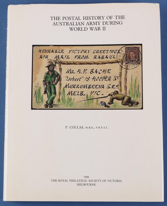 of the Aust Army during WWII, by Collas, 255 pgs, pub 1986 RPSV. In depth study inc locations of the Military Post Offices. Illustrated throughout, near new condition inc original DJ. (Image1) (Image2)