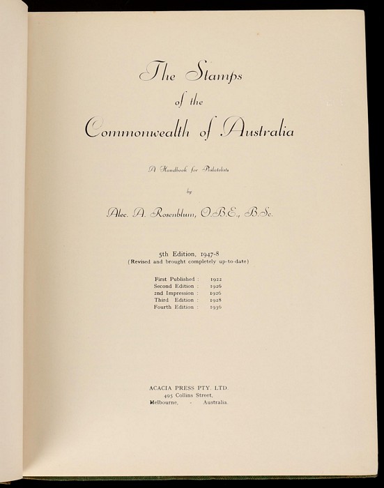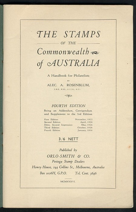 Commonwealth of Australia by Rosenblum Fourth edition 1936, (being supplement to 3rd edition 1928). 96pgs (paper back), VGC. (Image1) (Image2)