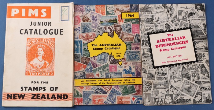 1964 Stamp Catalogue for Cocos, Nauru, Norfolk & PNG. New Zealand Junior Catalogue 1963. Australian Stamp Catalogue, Fifth Edition 1964. VG-Fine. (3) (Image1)