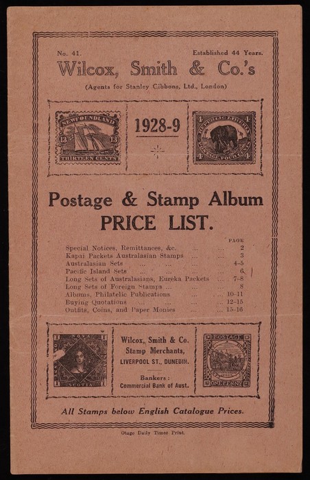 Philatelic Monthly Vol 1 No.3 Oct 1887, Vol 1 No.8 March 1888, & Vol VI No.5 Dec 1892. Also Wilcox Smith & Co 1928-29 Price List, Arnold Wheeler & Co late 1940s Price List. (5).