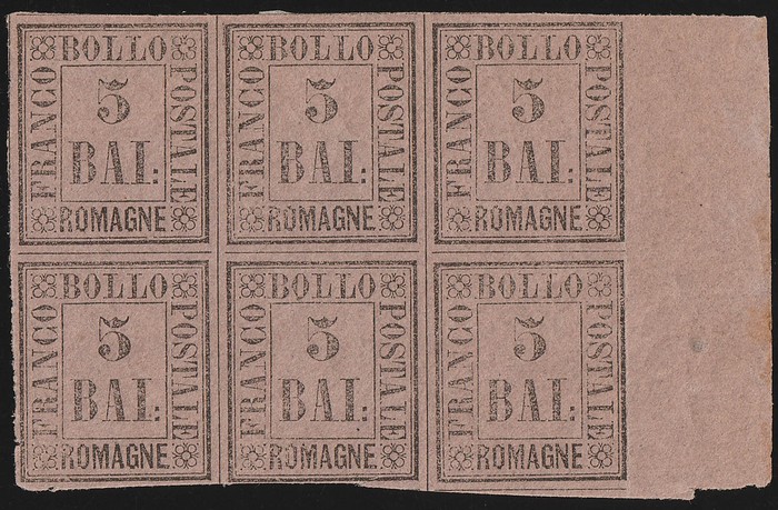 type-set Provisional 5b black on grey-lilac, right marginal blk of 6. VF M/5MNH, original gum, almost all 4 margins, 2 small cuts at base. SG 7 cat £540 for M singles, so should be at least double, £990 MNH, plus premium for blk. Sass 6
