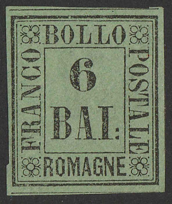 type-set Provisional 6b black on yellow-green. VF MLH, original gum, tiny tear at left, 4 margins. SG 8 cat £600. Sass 7 cat €900. (P) (Image1)