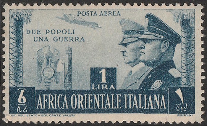 Hitler Mussolini Air 1L slate-blue, value at centre. VF fresh MLH. SG 62 cat £140. Sass PA20 cat €440. (P) (Image1)