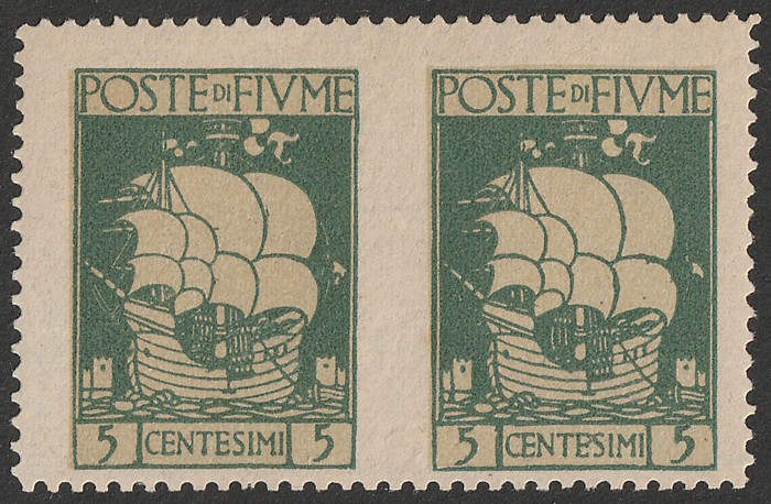 Pictorial Ship 5c green on buff horiz pr, error IMPERF between. VF fresh MNH. SG 201(var). Sass 190h cat €500. Exp twice inc Oliva, plus 2024 Ceremuga AIEP photo-cert. (P)