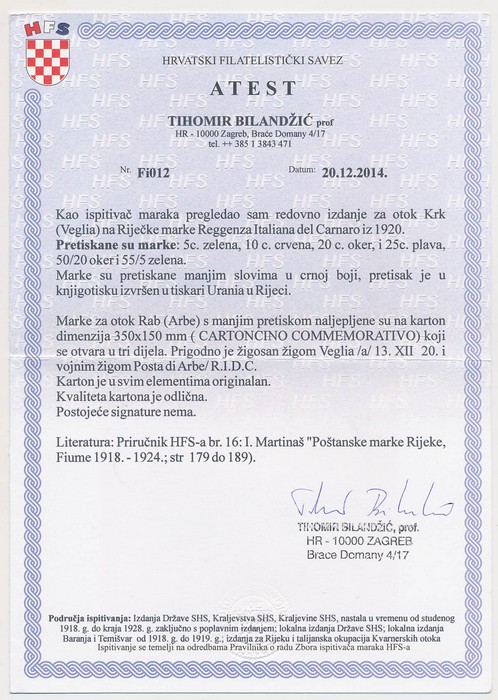 €2400 for bklt. 2014 Prof Bilandzic photo cert. (P) (Image1) (Image2)