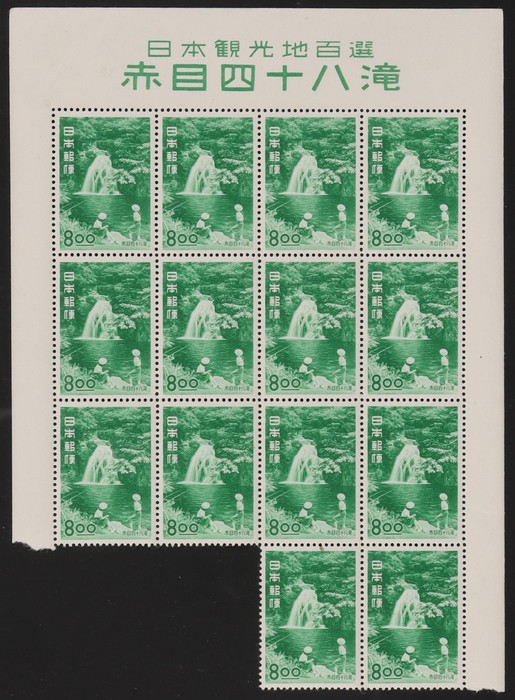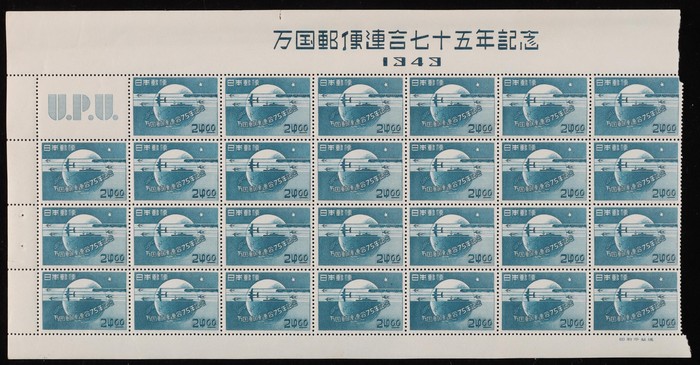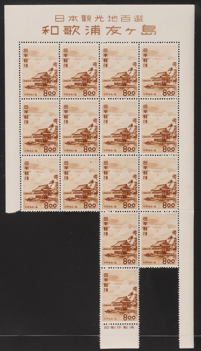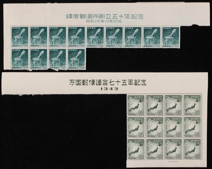 label, plus inscriptions. Observatory 8Y blue-green blk of 13 with inscription. VF fresh MNH. Sak C165, C167, C169-170 & C172 cat 185,000Y. SG 545, 546, 548-549 & 555 cat £1042. (6 blks) (Image1) (Image2)