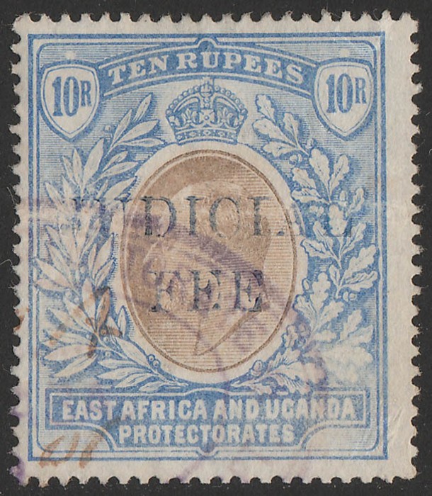 seriffed opt KEVII 10R black & blue, wmk crown CC. F-VF F/C, horiz crease, violet h/s cancel. Bft 36 cat £75. Rare. (P) (Image1)