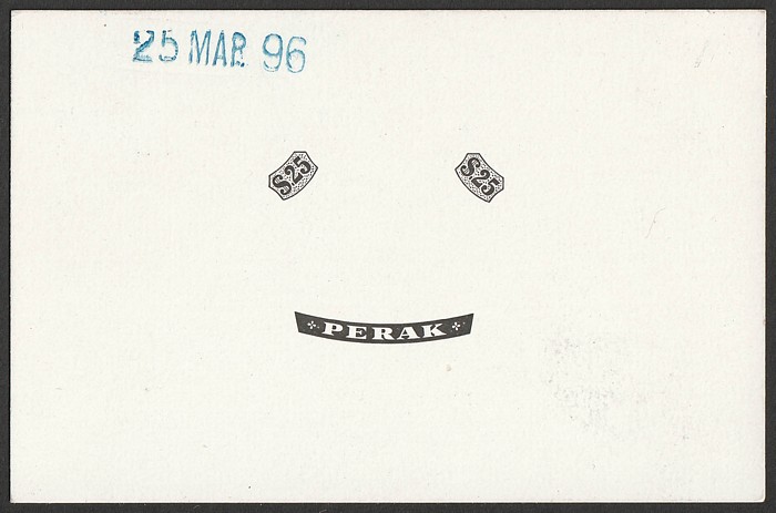 Elephants $25, black imperf proof of value & name tablet only, on card (91x60mm), with 25 MAR 96 date h/s in blue. Superb fresh UN as made. SG 80(p) cat £12,000 as normal. Important top value proof. (P) (Image1)