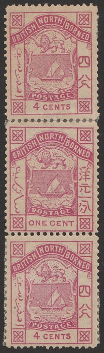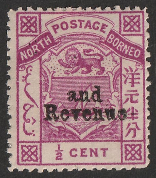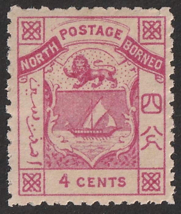 'North Borneo'. VF fresh MNH, top marginal. Scott 13 cat US$55 for M. SG 13 cat £65 for M, should be at least double £130 MNH. (P) (Image1)