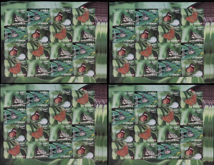 663 imageSamoa: 2015 Express Letter $10, $12.50, $56.25 & $75 set of 4 Butterflies. 100 sets in sheetlets of 4. Fresh MNH. FV Sam$15,375 = A$8440. SG E1-E4 cat £9500 = A$19,000. (25 sheets) (Image1) (Image2)