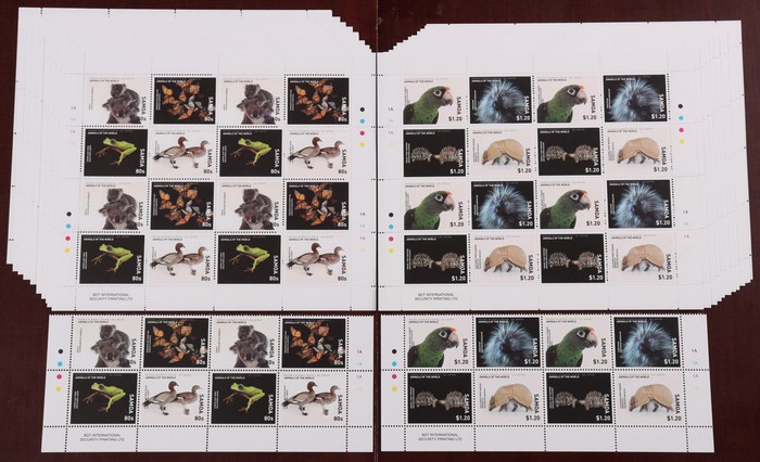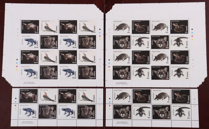 666 imageSamoa: 2016 National Geographic Creative Stamps featuring Animals of the World, set of 16 to $3.60 in se-tenant blks of 4 as sheetlets. 100 sets. VF fresh MNH. FV ST2480 = A$1300+. Useful thematic group. (100 sets = 1600 stamps) (Image1) (Image2)
