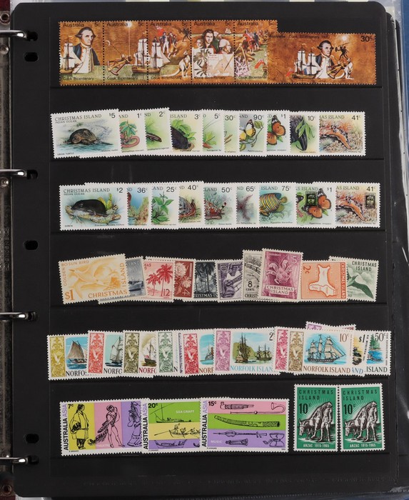669 imageShipping carton with British Commonwealth inc Australia pre-decimal U collection in Seven Seas hingeless album inc Kangaroos to 2/-, KGV to 5d inc OS opts, 1930s Commem sets, KGVI Defs to £1 Arms & pre-decimal Pics/Commems near comp. 1966-92 collection in another Seven Seas hingeless album inc 1971 Christmas 7c blk of 25, plus Indonesia 1996 Joint Issue Cuscus booklet (4, cat $400) & 1969-75 PO Pack accumulation (35) inc 1970 & 1971 Selected Issues. Christmas Is 2 volume Seven Seas hingeless albums 1958-2018 (new retail $400) with comp MNH collection to 1976 inc 1958 QEII & 1968 Fish set. Great Britain QV/KEVII selection to 1/- in s/book. Norfolk Is 1947-75 comp collection in Seven Seas slipcase hingeless album with pgs to end 1997 (retail $2800, plus extra for the stamps. Pitcairn Is 1940-80 M/MNH collection in 1940 Defs to 2/6, 1948 KGVI SW to £1, 1949 UPU, all other pre-decimals & decimal Pics to 1980 London M/sheet. Also Christmas Is 1986 Wildlife sheetlet (retail $60) & small collection of Singapore FDC. Ten albums in total. Large carton. (100s) (Image1) (Image2) (Image3) (Image4) (Image5) (Image6) (Image7) (Image8) (Image9) (Image10) (Image11) (Image12) (Image13) (Image14) (Image15) (Image16) (Image17) (Image18) (Image19) (Image20) (Image21) (Image22) (Image23) (Image24) (Image25) (Image26) (Image27)