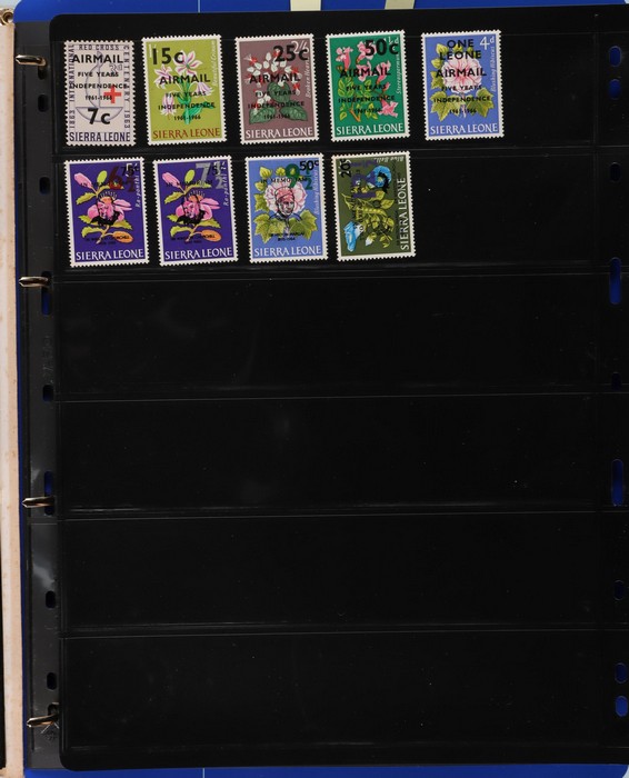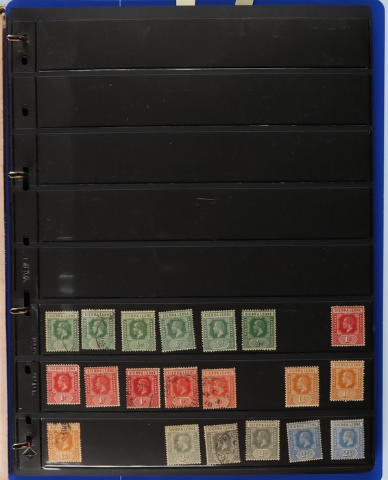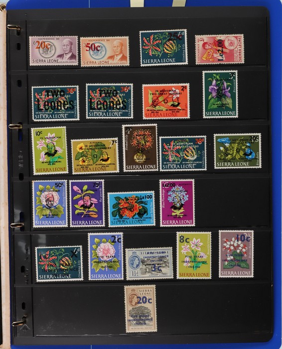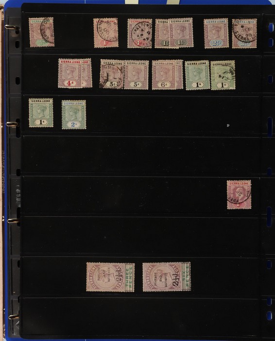 672 imageSierra Leone: 1876-1970s collection in binder. 1876-91 QV to 1/- inc shades & wmks. 1893 QV ½d on 1½d, error opt INVERTED (SG cat £120). 1896-97 QV Tablet to 2/-. 1897 QV 2½d on 3d & on 6d. 1912-27 KGV Elephant to £1, plus shades & wmks (£1 SG cat £250). 1933 Wilberforce set to £1 (£1100). 1935 Silver Jubilee set. 1948 Silver Wedding set. 1938-44 KGVI Pic set to £1. 1956-61 QEII Pic set to £1. 1961 Independence Def set to £1. 1963 Flowers set to £1. Most G-VF M/MNH/U, 70%+ being M/MNH, some tropicalised gum. SG cat £2400+ = A$5000+. (620) (P) (Image1) (Image2) (Image3) (Image4) (Image5) (Image6) (Image7) (Image8) (Image9) (Image10) (Image11) (Image12) (Image13) (Image14) (Image15) (Image16) (Image17) (Image18) (Image19) (Image20) (Image21) (Image22) (Image23) (Image24)