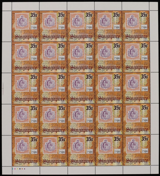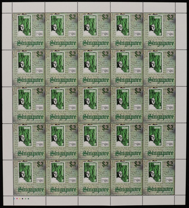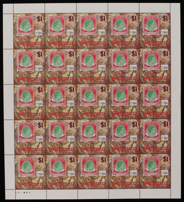 674 imageSingapore: 1980 London Philatelic Exhibition set of 4. 50 sets in sheets of 25. Fresh MNH. FV S$172 = A$207. SG 377-80 cat £187= A$375. (200) (Image1) (Image2) (Image3) (Image4) (Image5)