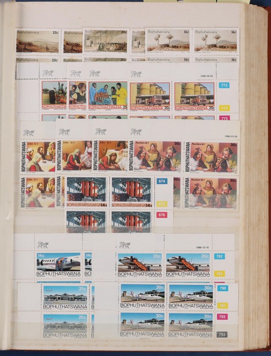 680 imageSouth Africa & Homeland collection 1979-89 in 6 s/books & loose in packets, covering South Africa, Bophuthatswana, Ciskei, Venda, Transkei, SWA, over 200 diff sets of Pics/Commems, some in marginal plate inc blks of 4, various complete sets on FDCs. S/books heavily foxed effecting about 20% stamps. Mostly F MNH, some F-VFU. (Est 500+ sets, 2000+ stamps, 200 FDCs) (Image1) (Image2) (Image3) (Image4) (Image5) (Image6) (Image7) (Image8) (Image9) (Image10) (Image11) (Image12) (Image13) (Image14)