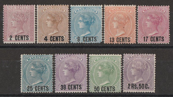Surch set 2c-2R50c on 5/-. Mostly F-VF M, nice colours. SG 83-91 cat £700. Rare set. (9). (P) (Image1)