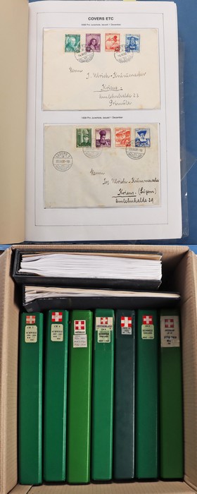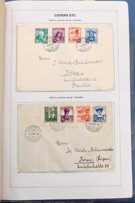 686 imageSwitzerland: 1930s-2011 FDC collection in 8 binders. Noted inc Pro Juventute FDCs plus Season's Greetings cards from Swiss Philatelic (1980-2008). Also a Used collection in a Davo album 2009-12 which appears comp. Most F-VFU. Mi est cat €2000+ = A$3500+. (500+, covers & 150 strips). (Image1) (Image2)