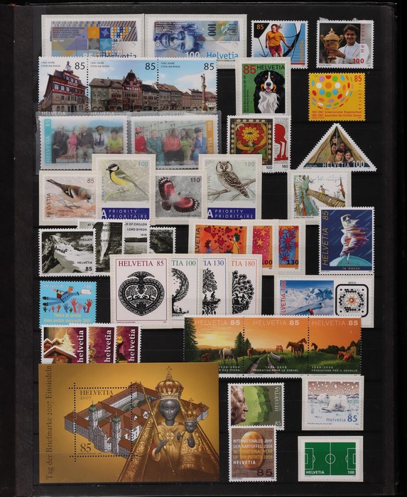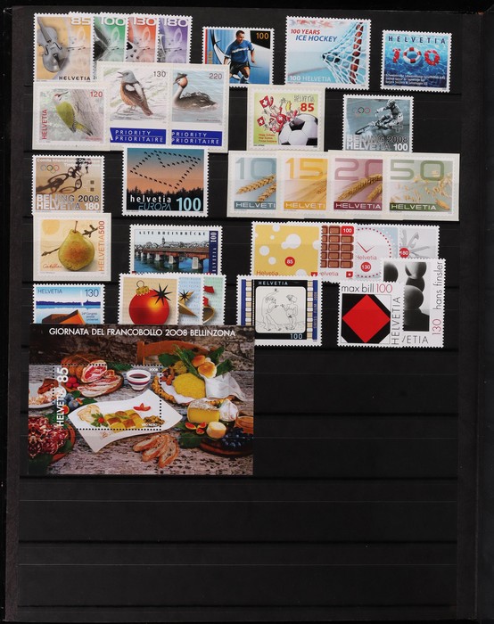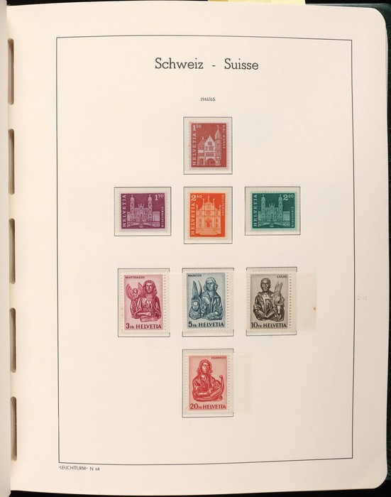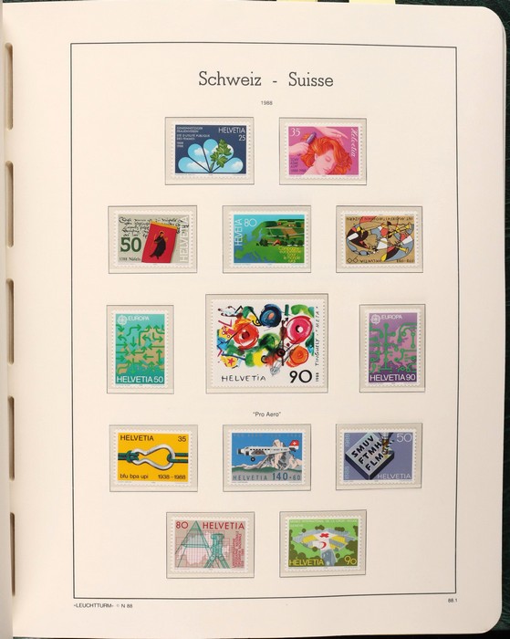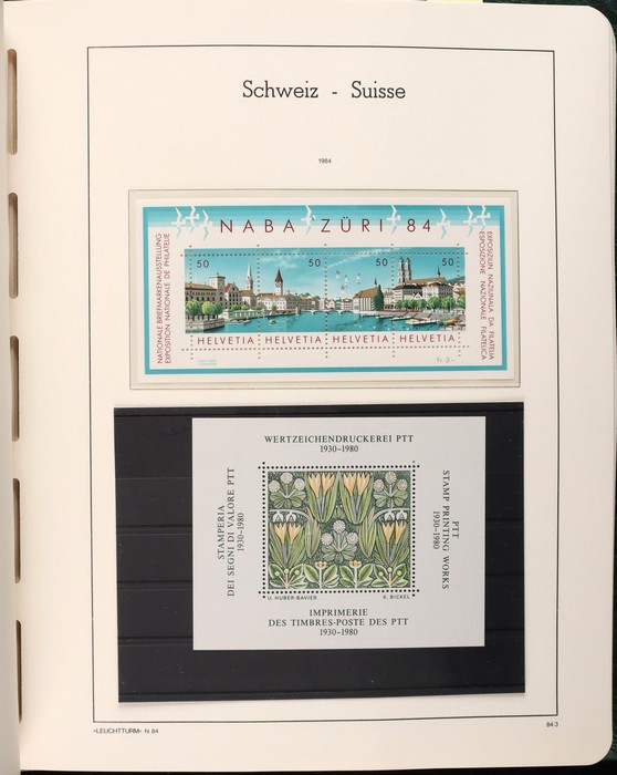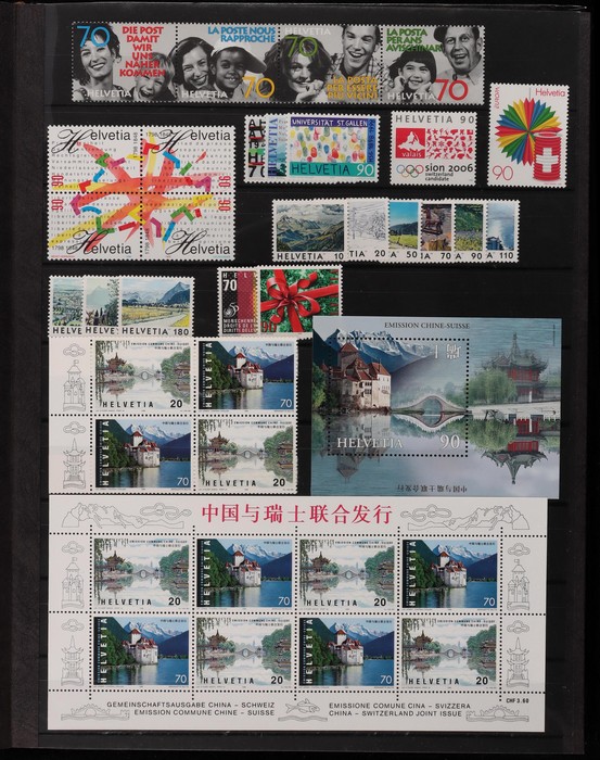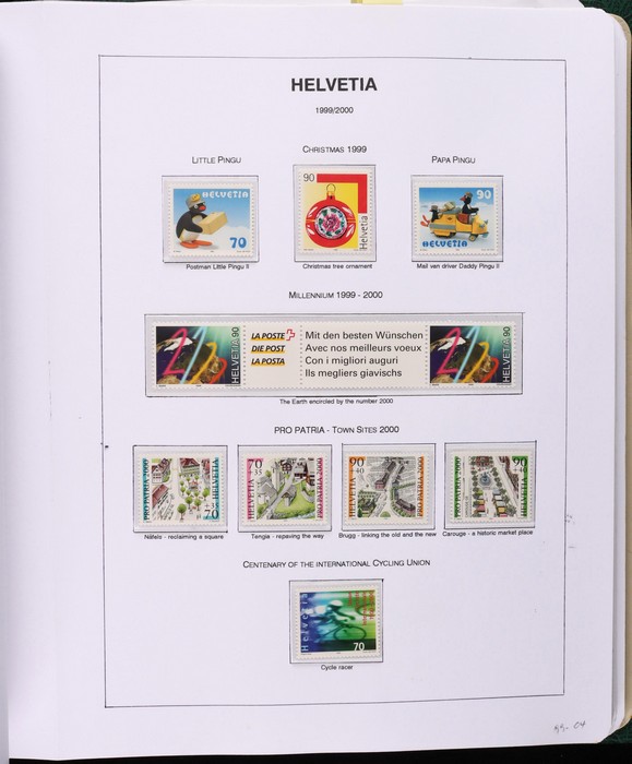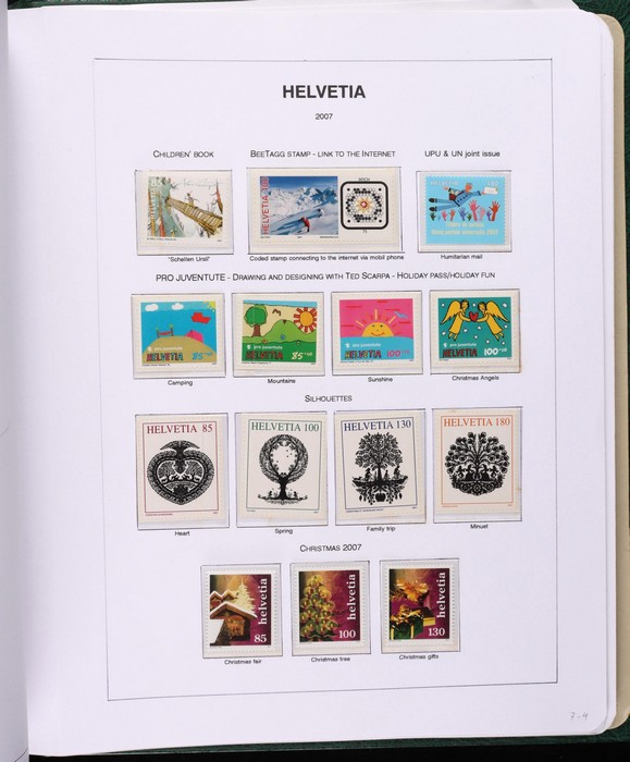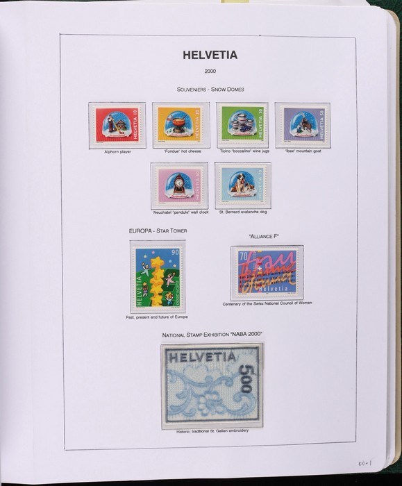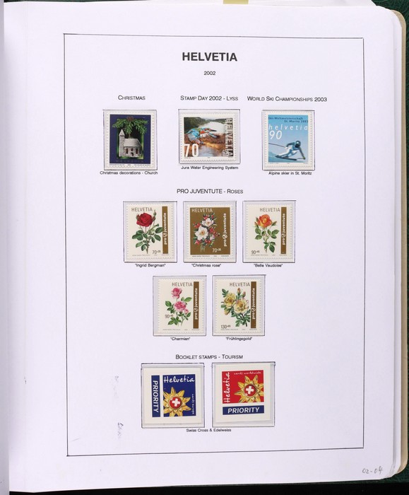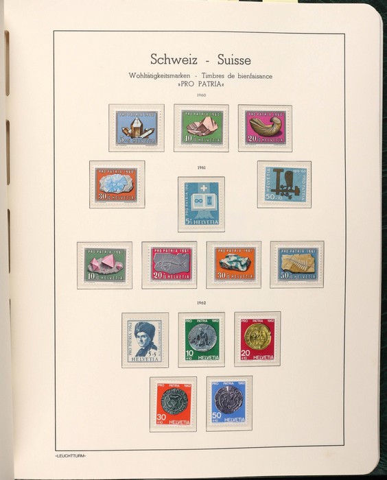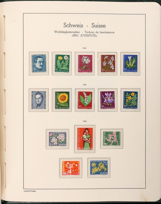 687 imageSwitzerland: 1960-2012 collection in 2 Lighthouse illustrated hingeless albums, seems fairly comp inc Pro Patria issues 1960-2011 & Pro Juventute issues 1960-2011, also noted 1941 Pro Juventute M/S, many comp sets, all diff, most M/S inc 1960 Pro Patria M/S. Mostly VF MNH, few MLH or VFU. SG cat £3500+. FV alone SFr1300 = A$2400 valid for postage. (1600 + 35 M/S) (Image1) (Image2) (Image3) (Image4) (Image5) (Image6) (Image7) (Image8) (Image9) (Image10) (Image11) (Image12) (Image13) (Image14)